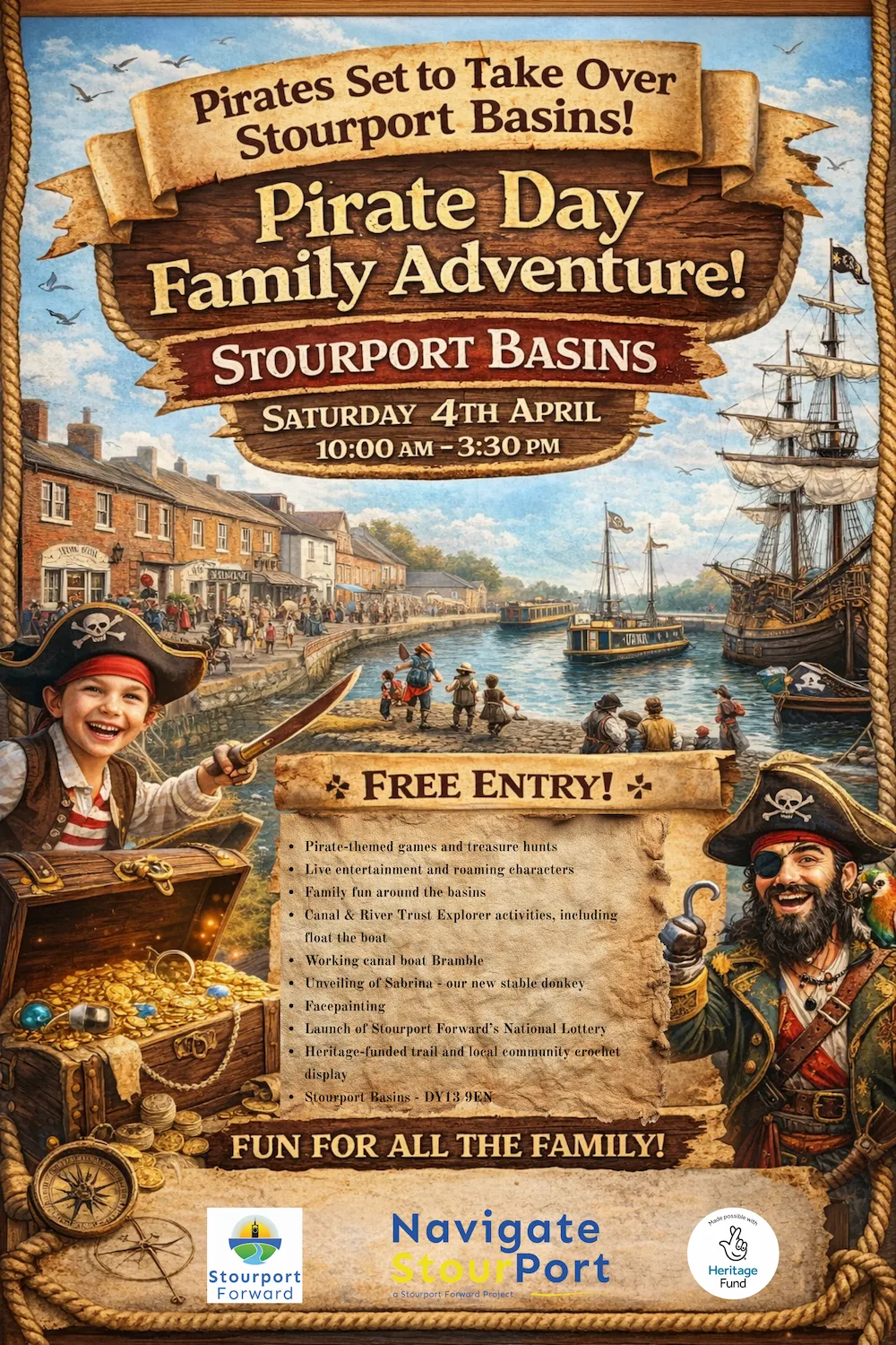 Ahoy there! Families, adventurers, and budding buccaneers are invited to drop anchor at Stourport Basins on Saturday 4 April for a swashbuckling Pirate Day packed with fun, entertainment, and treasure-filled excitement.